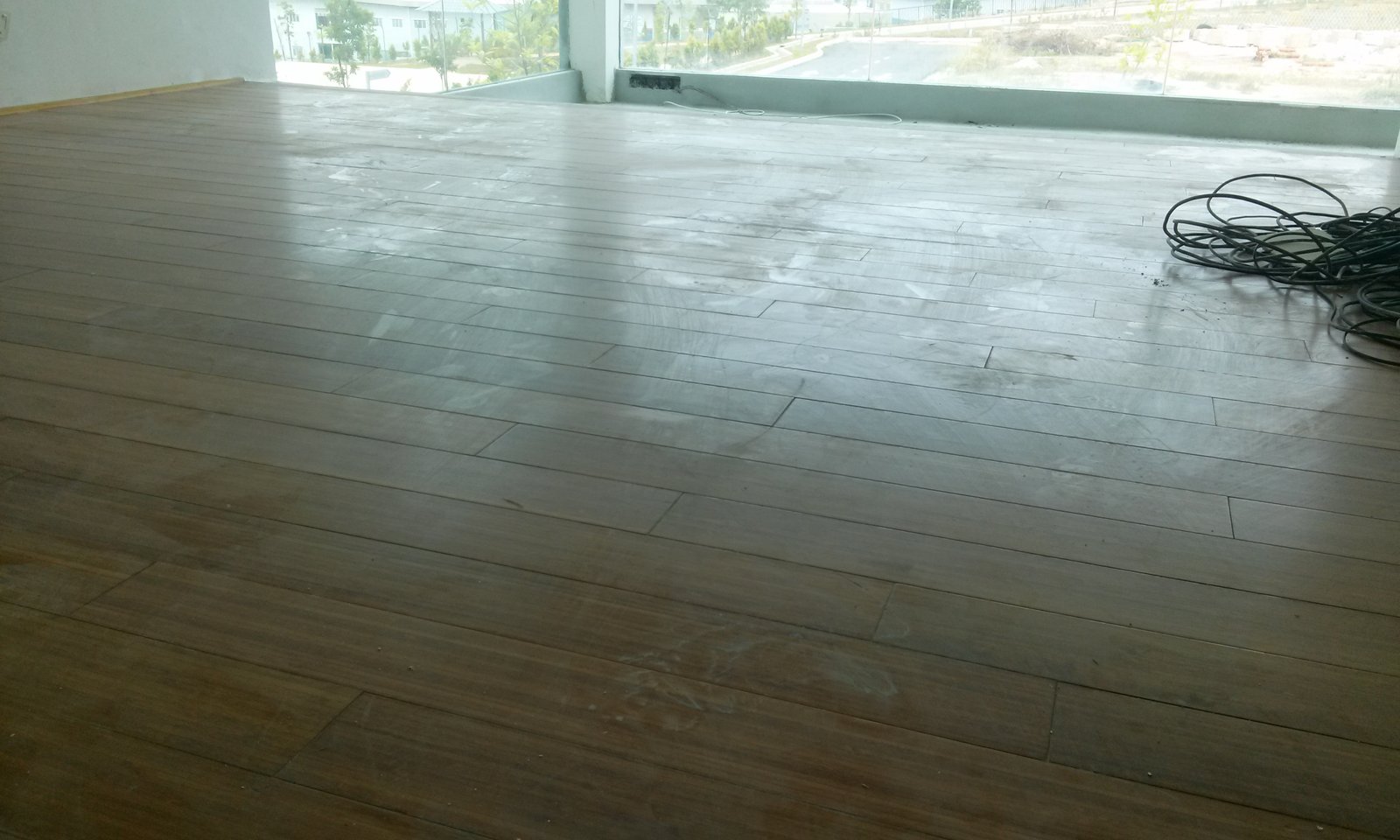 The Bamboo Floor can be varnish and restore by grinding and vanishing. From far, it looks like ceramic tiles,when you knock on it, it didn’t sound like solid wood, it sound hollow. It is because bamboo flooring apply engineering wood system.