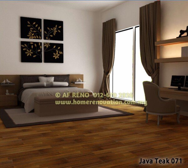 Let design your house flooring with laminate flooring, easy for installation, dust free, 1-2 days work,can lay on top of the existing marble, cement, or tiles flooring ( but need to chamfer the door).
